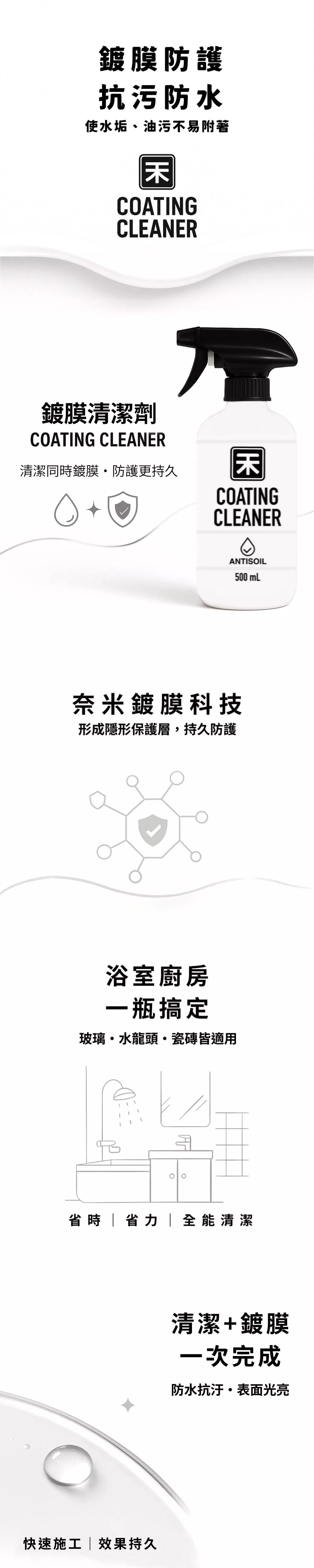 將清潔劑噴灑於表面,用刷子或毛巾直接刷洗擦拭。刷洗完後直接用清水或濕毛巾沖洗乾淨。清潔鍍膜一次完成。